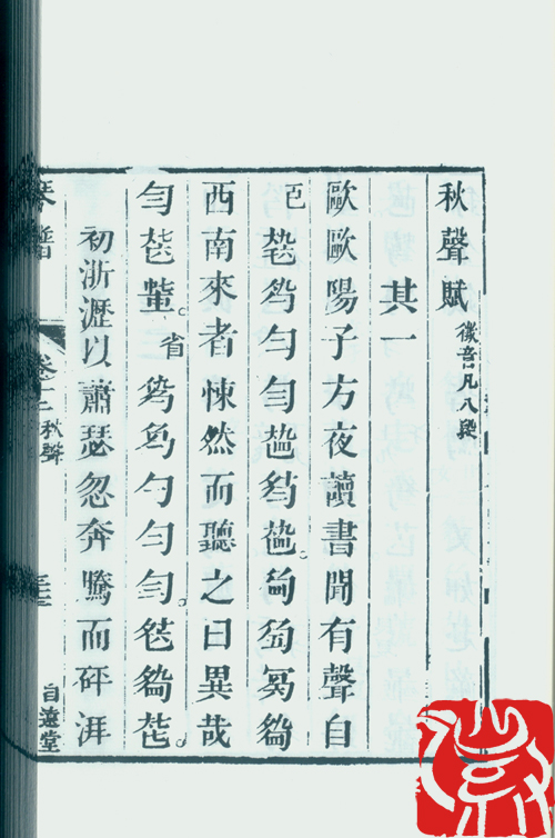 清刊本。广陵琴家吴灴传谱。刊于清嘉庆七年(公元1802年),共12卷,收90曲。其中,末卷30曲附有歌词。除《澄鉴堂琴谱》、《五知斋琴谱》两书中的45首外,还增收了《龙翔操》、《梅花三弄》、《幽蘭》、《天台引》等45操新曲。