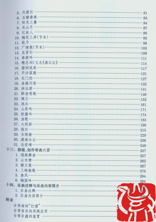 12、 传统琴曲三十首;