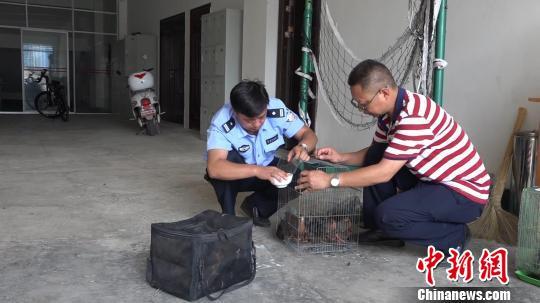 图为民警喂食红胸田鸡。 钟欣 摄