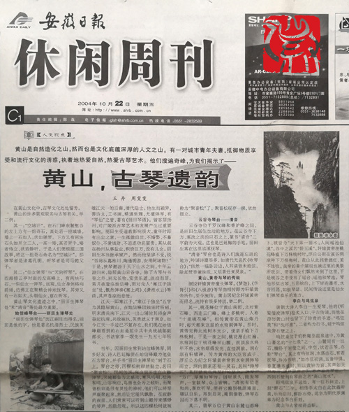【编者按】本文发表于安徽日报2004年10月22日。安徽日报原编者按为:黄山是自然造化之山,然而也是文化底蕴深厚的人文之山。有一对城市青年夫妻,抵御物质享受和流行文化的诱惑,执着地热爱自然,热爱古琴艺术。他们搜遍奇峰,为我们揭示了——