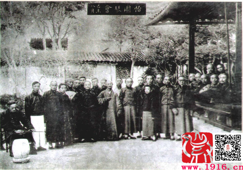 一九三五年重阳节苏州怡园琴会面壁亭合影,会上倡议结社今虞