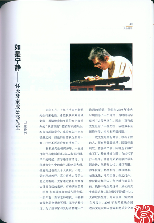 【徽骆驼】《安徽文艺界》杂志刊文《如是宁静——怀念琴家成公亮先生》