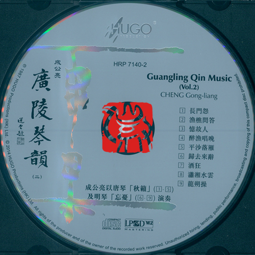 唐琴“秋籁”——仲尼式,冰裂断纹,深褐漆色,琴体圆浑。音色古雅细腻、圆润,余韵绵长,音量弱小。琴底刻有“秋籁”及印章“德斋珍藏”,腹内藏朱毫楷书“大唐开元三年李晋制”诸字。是否为唐代遗物,琴界看法尚不一致。此琴曾由清末民初名琴家叶诗琴收藏,1985年成公亮在山东济南得此琴时已残破不堪,同年伏天修复于济南。