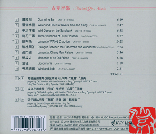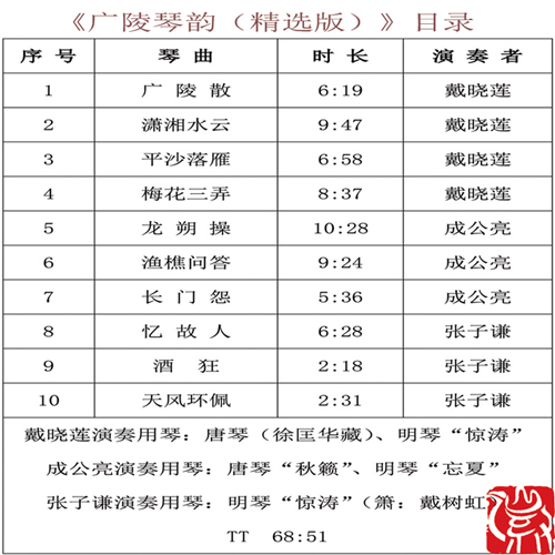 【雨果】《广陵琴韵(精选版)》CD 张子谦、成公亮、戴晓莲