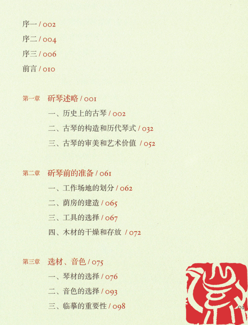 时光荏苒,转眼已经十年过去了,申遗成功以来的十年里,古琴艺术取得了长足的发展,得到了应有的重视,古琴艺术进入了高速发展期。遗憾的是,在历代浩如烟海的琴学文献中,系统阐述古琴制作的文献不多,使得古琴艺术这一“世界文化遗产”的重要组成部分——古琴的制作,披上了神秘的面纱,以致传承困难,几至断绝。时至近现代,经过几代琴人的摸索与实践,使斫琴工艺渐趋成熟,但系统总结古琴制作方法的著作尚付阙如。