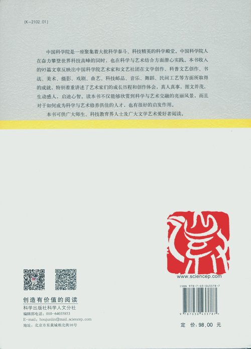 这是一本由科学出版社近日出版的新书。收入的95篇文章,从一个侧面反映出中国科学院艺术家和文艺社团在文学创作、科普文艺创作、书法、美术、摄影、戏剧、曲艺、科技邮品、音乐、舞蹈、民间工艺等方面所取得的成就。书中着重讲述了艺术家们的成长历程和创作体会,真人真事,图文并茂,生动感人,启迪心智。