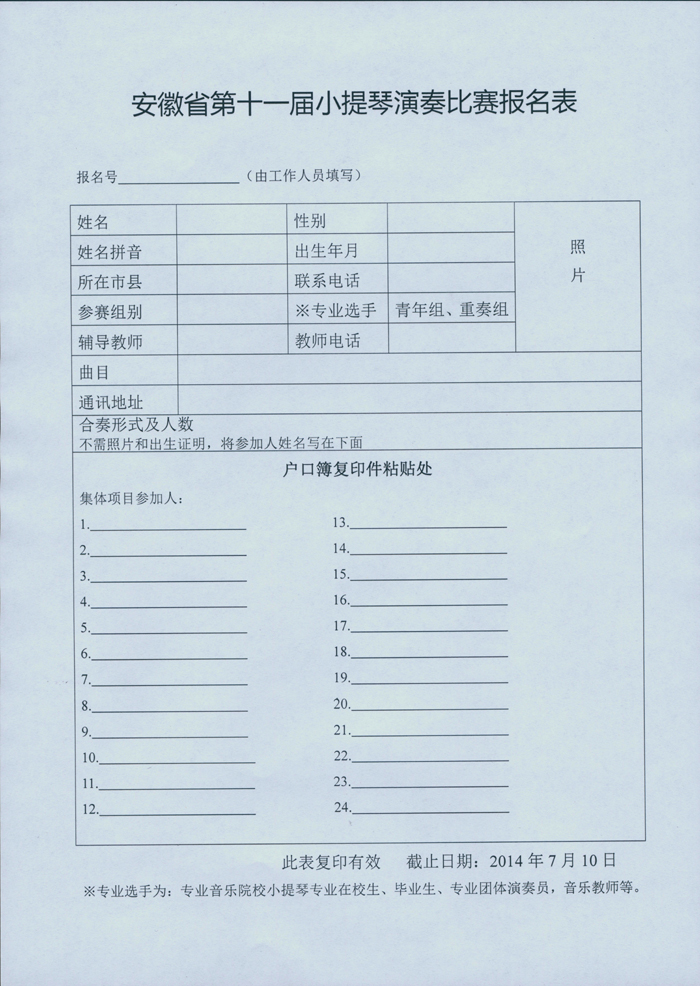 4.比赛具体事宜将及时通知各地市有关部门和教师,也可登录省音协网站:http:/.www.ahyyj.com查阅、下载。