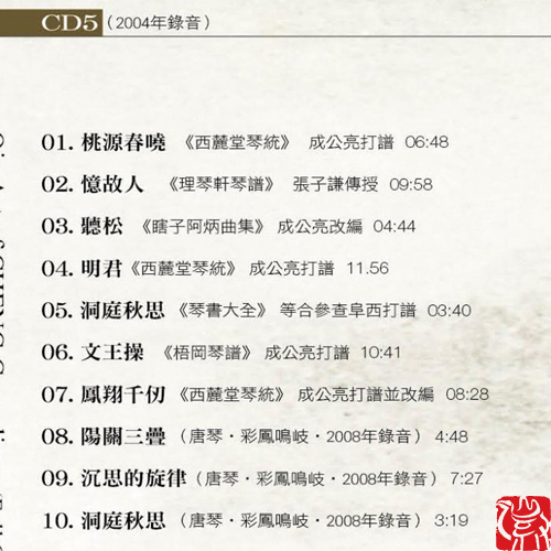 香港龙音制作公司继为中国琴界奉献了査阜西、管平湖、姚炳炎、张子谦、龚一、李祥霆等人的琴学巨册(音响图文)后,又在“成公亮古琴艺术馆”落成之际,再次以“精专精神”推出含有1张DVD、7张CD以及图文合册的大型专辑——《成公亮古琴艺术全集》,这是目前龙音出品的内容最为厚重的古琴专辑。